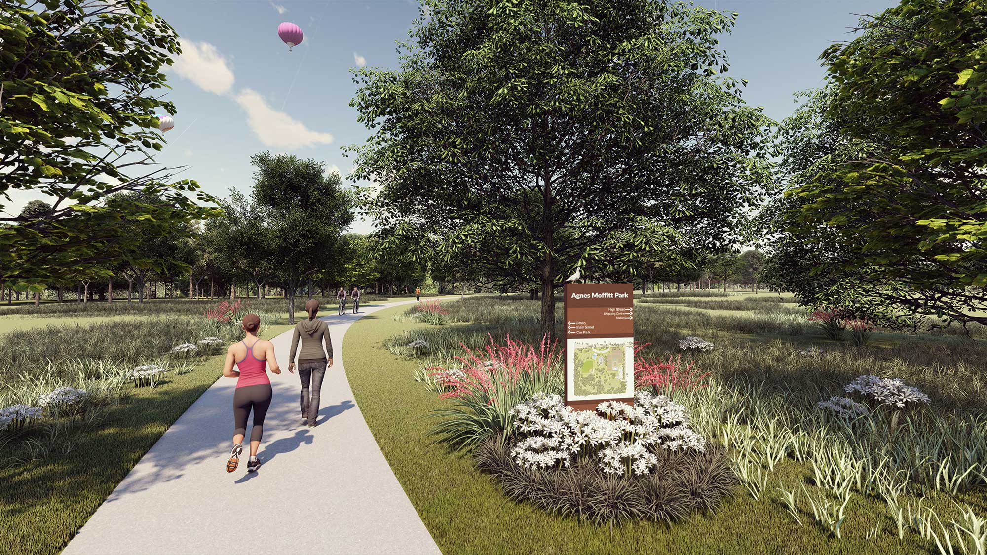 Clark Condon assisted the City of Houston and the Council member’s office with a Master Plan to reimagine Agnes Moffitt Park. Our process also involved regular meetings with a stakeholder group to gather their comments for the Master Plan. Agnes Moffitt is an existing City of Houston park with a pool, basketball pavilion, disc golf, and a ball field. The reimagined Agnes Moffitt Park will include a new swim complex, sprayground, playground, upgraded ball field, a dog park, and trails. The City of Houston is also working with the Houston Tennis Association to provide nine acres for the development of a tennis complex on the site.