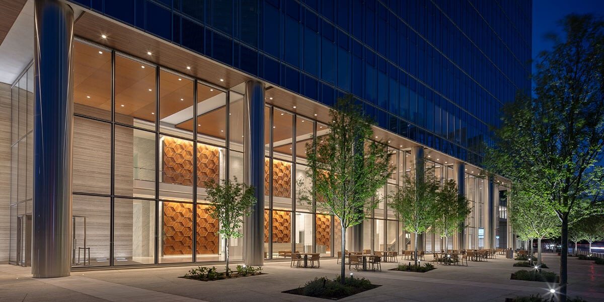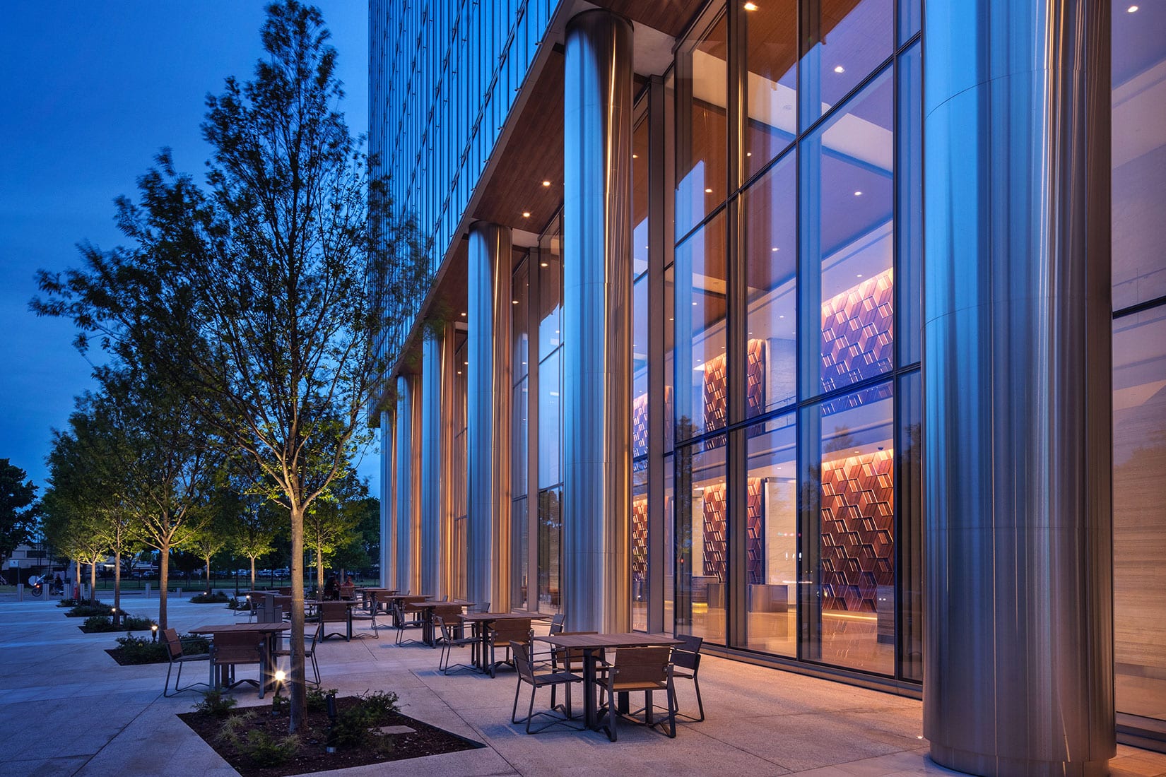 BOK Plaza is a 27-story Class-A office space tower in Oklahoma City, Oklahoma. Clark Condon worked with the Hines, Devon Energy, and Pickard Chilton Architects to create a 16,000 square foot public plaza that serves as a welcoming entry for the tower. Custom-cut granite and quartzite pavers respond to the architecture of the building to create a seamless transition from inside to outside. Groves of Cedar Elms and Shumard Oaks provide shade for the flexible outdoor seating. The plaza in conjunction with a refreshed streetscape provides a comforting, urban, and modern look for the block.