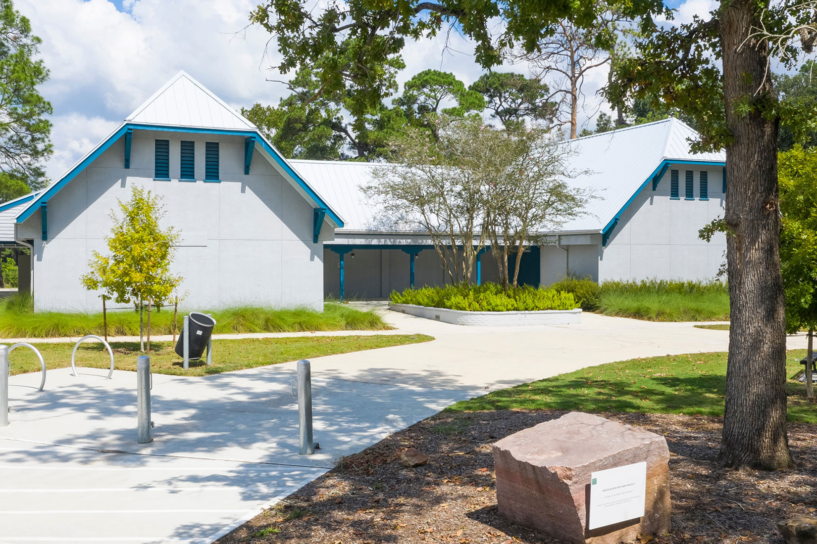 Clark Condon led the design to re-purpose an existing under-utilized golf course into a multi-sport adventure park. Brock Park, set at the confluence of two bayous, was damaged by weather conditions in early 2016 limiting accessibility to the course and closed to the public. The City of Houston and the Houston Parks and Recreation Department decided to re-envision the open green space to serve more people in the area and the surrounding communities. Brock Adventure Park improved access to the 360-acre park, diversified the way people interact with the landscape, and reduced impact to the existing ecosystems. Due to the site’s proximity to Halls and Greens Bayous and its propensity to flood, special consideration was given during the planning and design phases to ensure any improvements did not have an adverse impact to the floodplain. The park includes unique activities that are adventurous in nature, but also suitable to the existing park terrain and vegetation. Program elements include disc golf, a playground, cross country, cyclo-course track, and more. Other improvements include renovations to the existing clubhouse and the restoration of a portion of the golf course to nine holes.