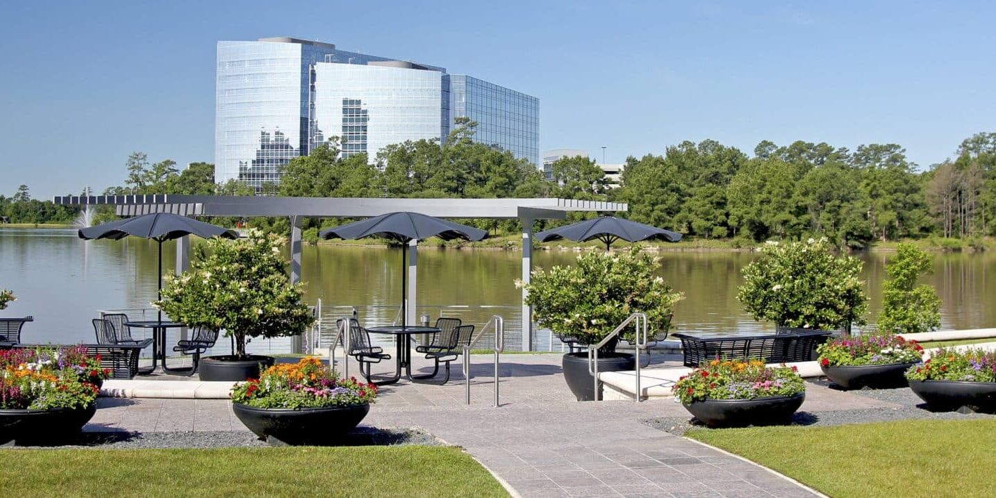 The new, six-story corporate headquarters is situated along the edge of Lake Woodlands in The Woodlands, Texas and is the second building on the corporation’s campus. The largely wooded, 12.5-acre campus provides a natural, inviting setting and a relaxed atmosphere for employees and guests to enjoy. The campus features custom paving, meandering walkways, an arbor, outdoor seating and a green lawn for events, as well as an overlook and dock on Lake Woodlands.