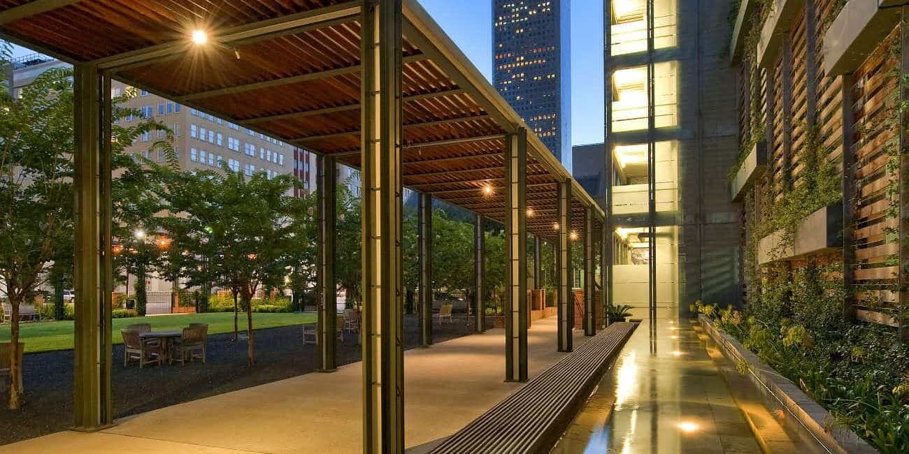 In 1839, Christ Church was a small parish situated in the middle of a tiny, swampy settlement town. Today, Christ Church Cathedral rests in the heart of what has become Downtown Houston. In 2007, a full block adjacent to the historic site was renovated and adapted for mixed-use. Part of this effort created a quarter-block open space called Nancy’s Garden which has many welcoming amenities including, a water feature, shade structures, seating, gardens, and an open courtyard. Clark Condon designed this special place which has significantly thrived, and, although it is surrounded by a hurried urban setting, people can stop there to rest and peacefully reflect.