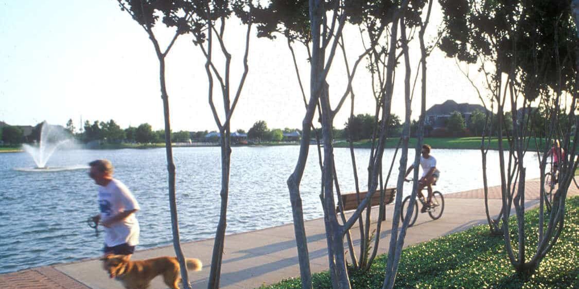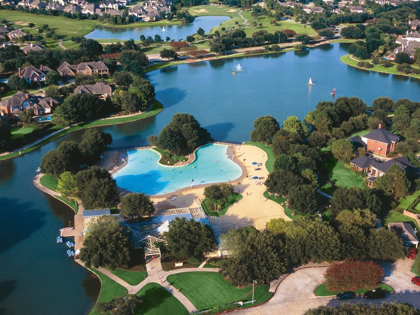 As the landscape architect for this 6,000-acre residential master-planned community, Clark Condon was responsible for thoroughfare landscaping and a greenbelt system which links two lakes and includes biking and hiking trails, parks and playgrounds. Integral to the landscape design and aesthetics of the project are the amenities. Landscape design was provided for the beach club, play areas, tennis courts, entries, information center, golf course and clubhouse. The beach club complex provides a unique beach environment on the Texas prairie with a swimming lagoon, bath houses, decking, boat launching, sand volleyball and plantings.