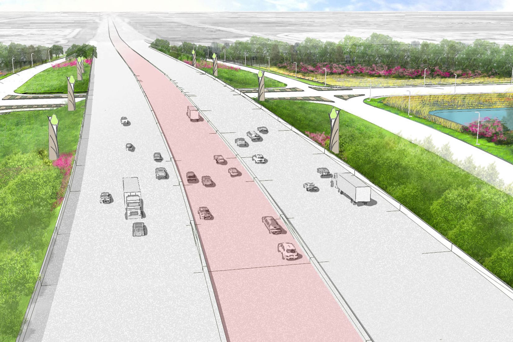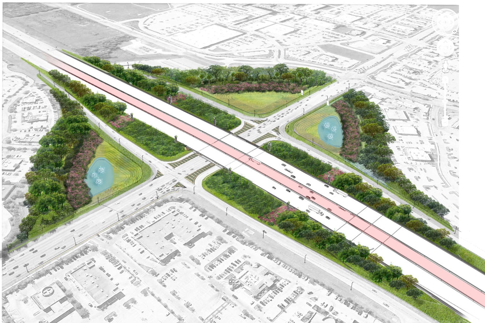 HIGHLIGHTS: | Iconic Gateway Markers. Streetscapes. Planting. |