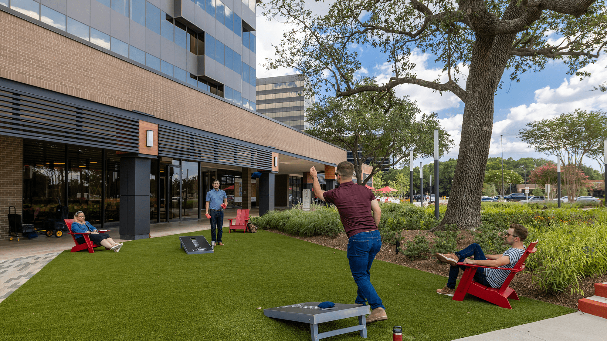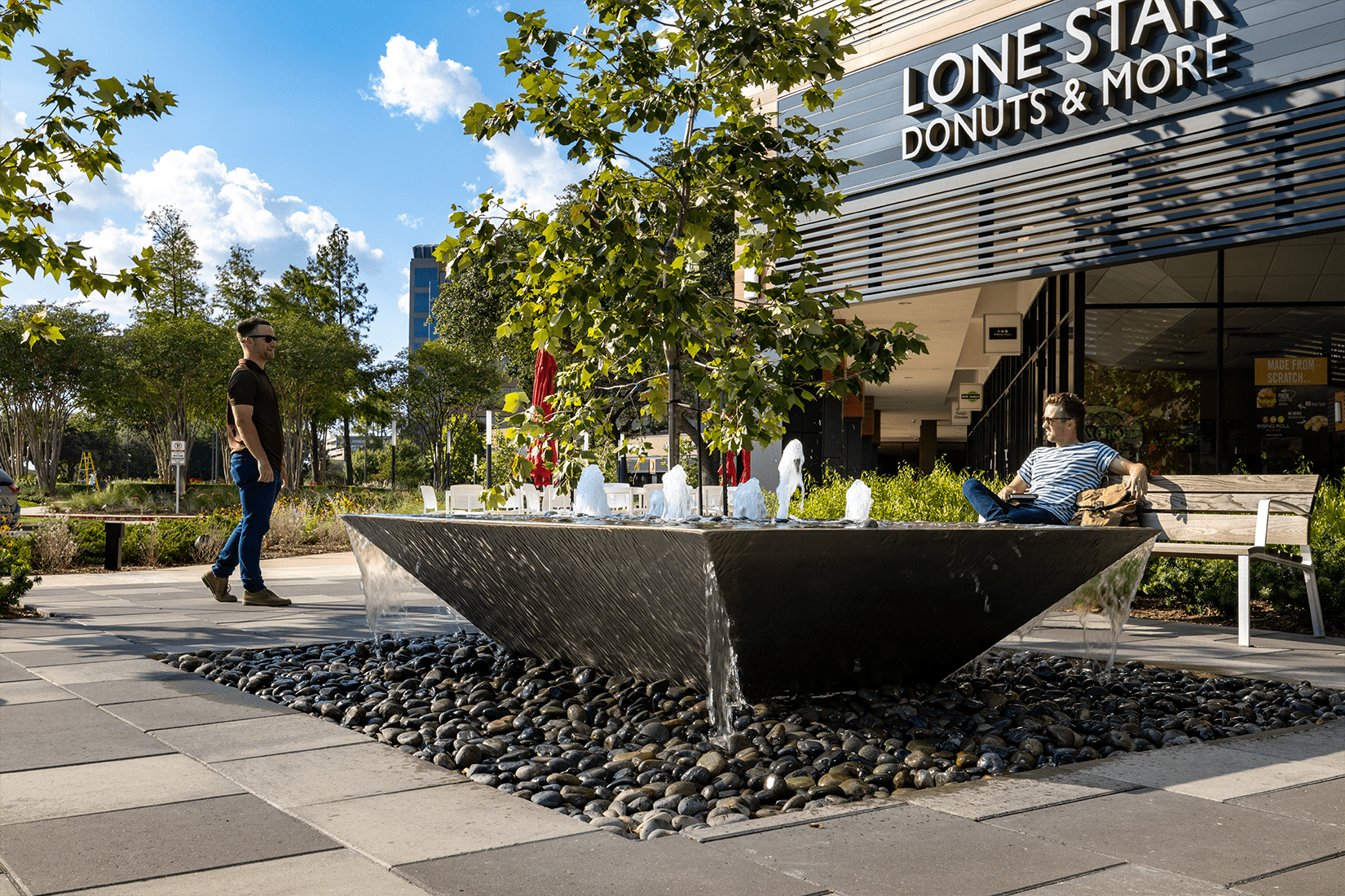 Alongside Lincoln Property Company and Ziegler Cooper Architects, Clark Condon transformed 70,000 square feet of the former Exxon Mobil Campus into a vibrant retail corridor, dubbed CityNorth. The extensive landscape improvements include expanded public green space, outdoor lounge areas and flexible event lawns. Outdoor work-enabled spaces provide campus tenants with areas for mobile work, remote meetings and group presentations. The revamped dining opportunities feature dining terraces and water features to enhance the user experience and activate the campus during and after business hours.