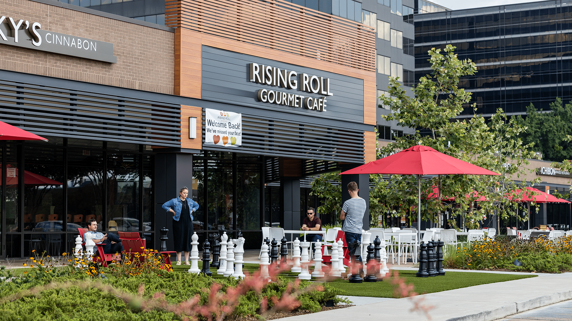 We worked closely with the client and contractor to utilize as many of the large, existing trees on site as possible to provide an instant impact. Useable spaces were created by removing a lane of traffic and parking. By reclaiming this space, the design team was able to activate approximately 1,000 linear feet of storefront and provide the tenants with valuable space immediately adjacent to their front door. Circulation was carefully considered to increase access to the retail frontage and office towers while also creating a vibrant public space to attract and retain users. Additionally, we strategically placed event spaces to provide the client with opportunities to expand the number of programmed activities throughout the year and increase pedestrian traffic to provide further incentives for corporate tenants. The project opened to the public in November 2019.