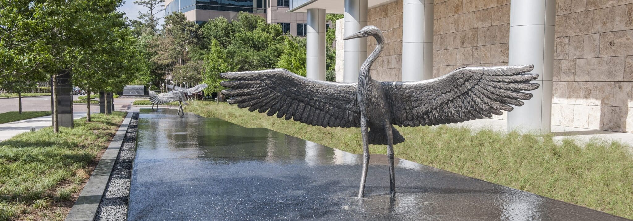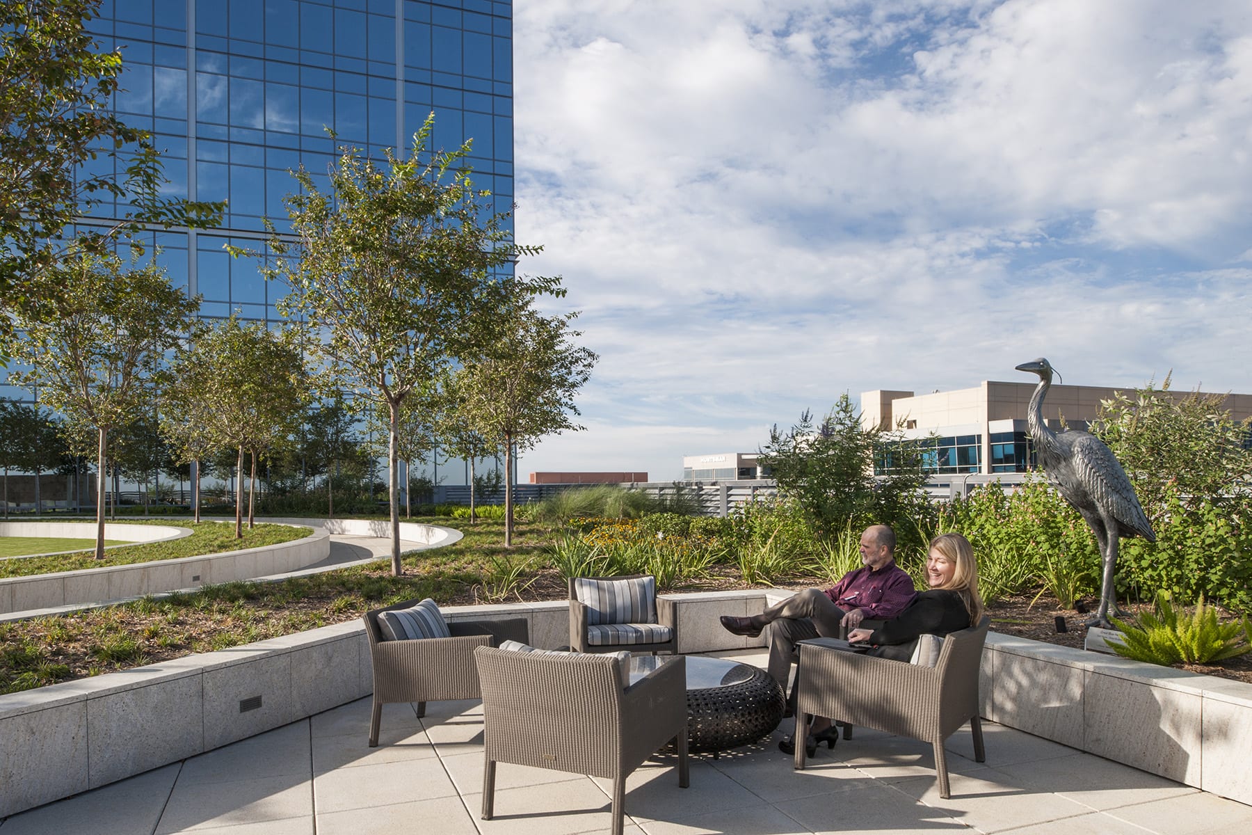 Clark Condon was part of the design team for this new high-rise Class A office building for Anadarko in The Woodlands. Having previously worked for this client, we had to maintain a level of sophistication and unification with an existing development — through high-end structures, lush plantings, art and unique features — while providing an extension to the architect’s aesthetic. Our scope also included a large 33,307-square foot garden terrace on the roof of the garage adjacent to the conference center. At ground level, there is a signature fountain graced with artist-crafted stainless steel heron sculptures creating a dramatic urban edge for this part of Town Center. Our scope also included pedestrian and bikeway connections to Town Center and The Woodlands Waterway. This project is LEED Silver.