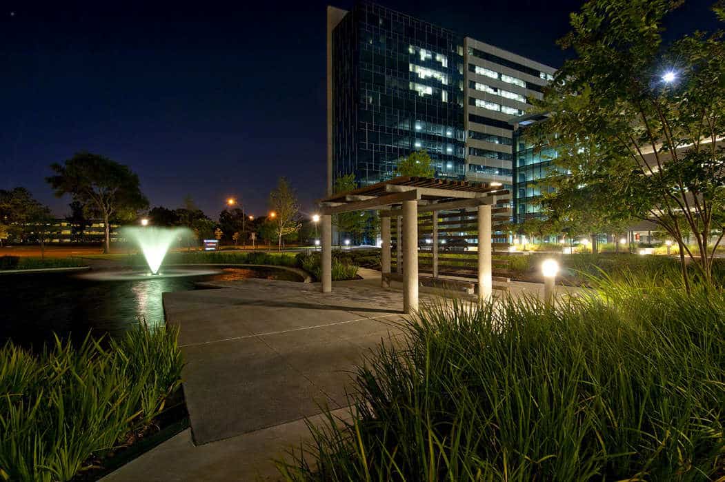 Trammell Crow Company and Principal Real Estate Investors’ Energy Center I received a LEED® Silver certification, and the more recent Energy Center II was awarded LEED® Gold certification. Clark Condon contributed to several green design elements for this campus. Tree preservation, the use of drought tolerant native landscaping, ornamental grasses and a drip irrigation system positively impact the environment. In addition to open spaces and pedestrian areas, we designed a garden courtyard in between the two complexes for the tenants. The water feature amenity offers a place of respite and completes the campus setting.