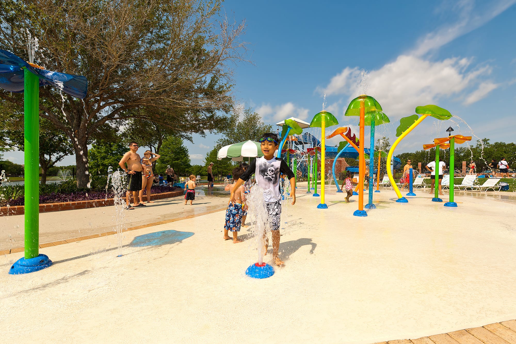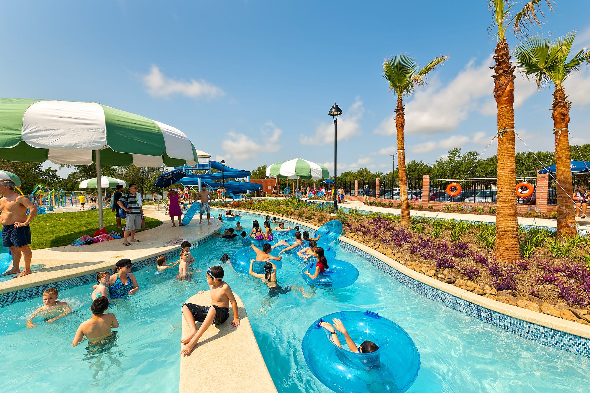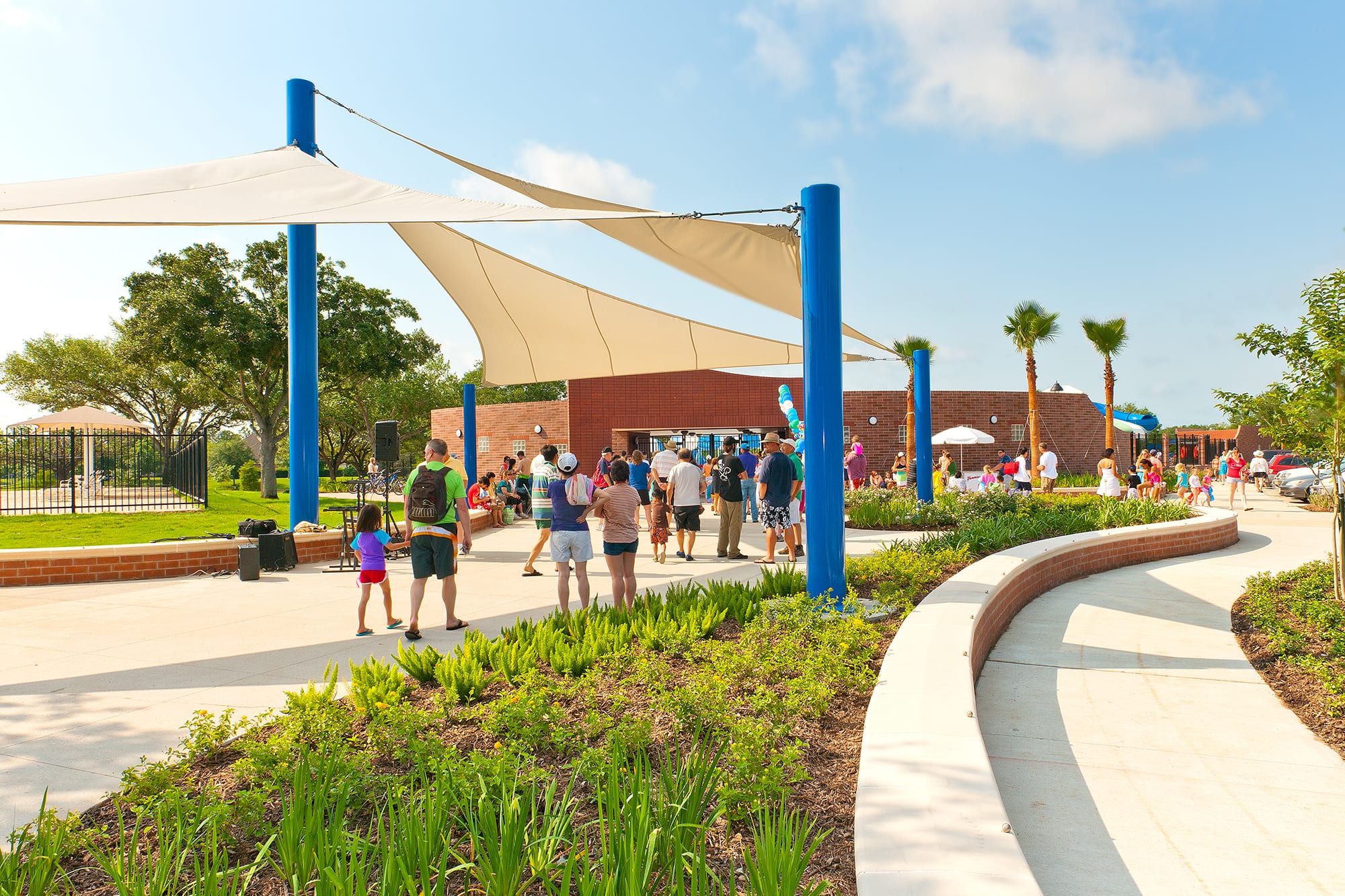 A well-established community, First Colony looks for opportunities to enhance their existing parks to meet the changing needs of their community and stay competitive with newer neighborhoods. Clark Condon has worked with First Colony Community Association on their Open Space Master Plan and subsequent updates since 1999, with a focus on identifying opportunities to improve and upgrade existing facilities. One of the sites identified in that process was the Aquatic Center Community Park, for which we provided design and implementation. This centrally located park is the largest available park in the association and serves more than 10,000 households. It is also a destination within the community, as it is home to the Community Association offices and large lap pool. The multi-generational family leisure complex has interactive features in the pool, a zero entry pool, lazy river, slides, a vortex pool and a separate spray pad area set amongst the existing trees and lake. The park also offers new volleyball courts, bocce ball courts, boardwalks and seating plazas.