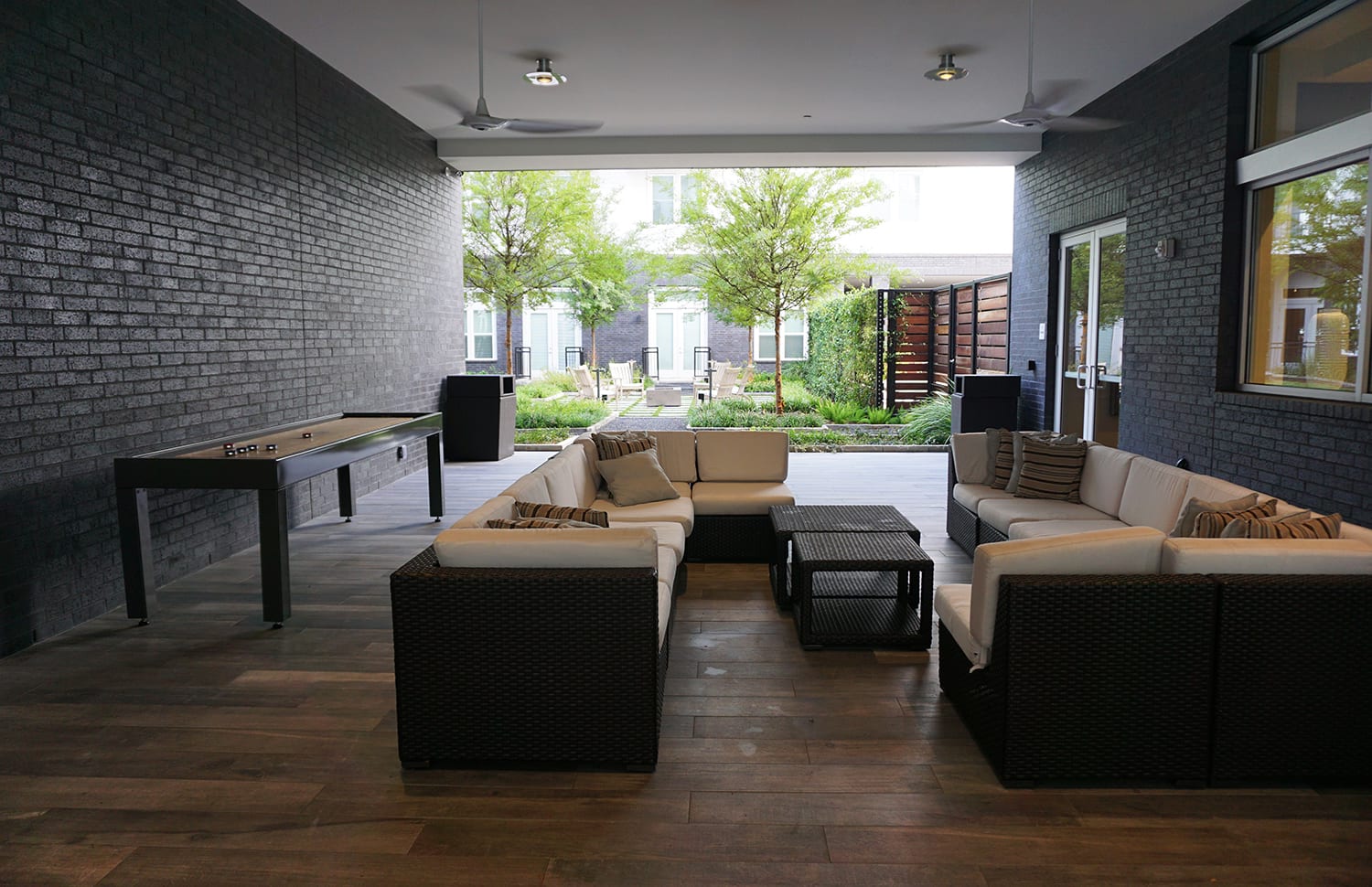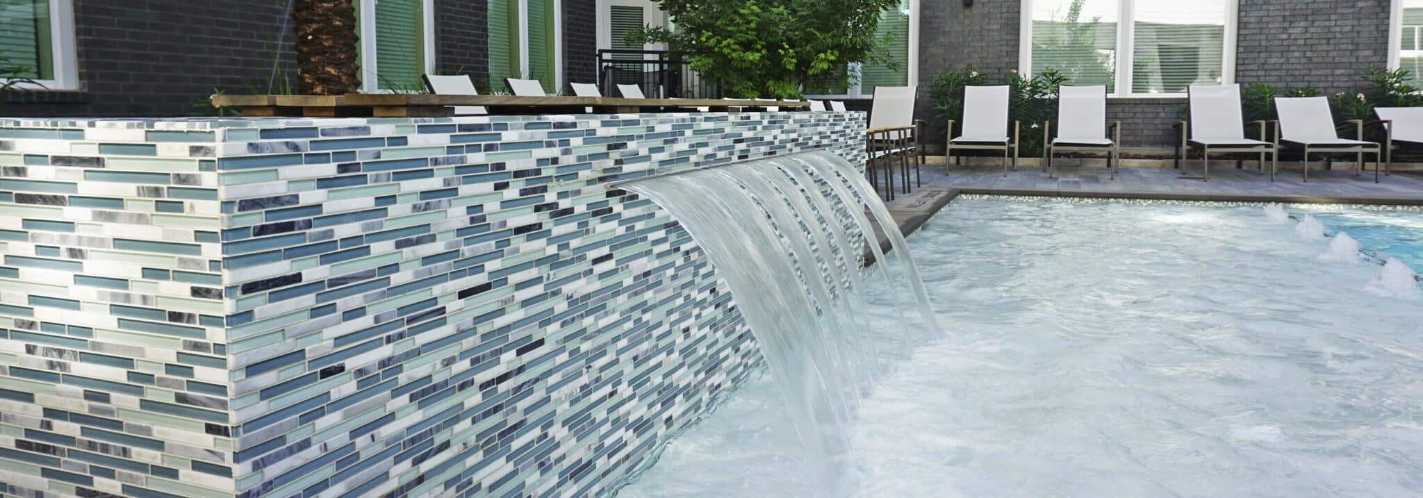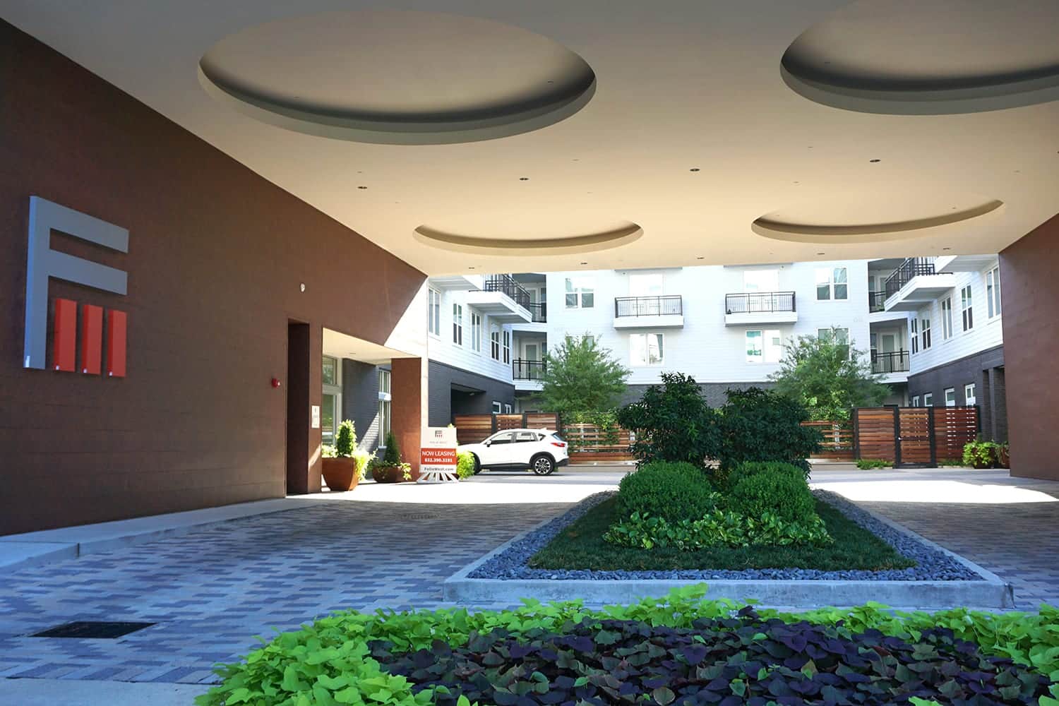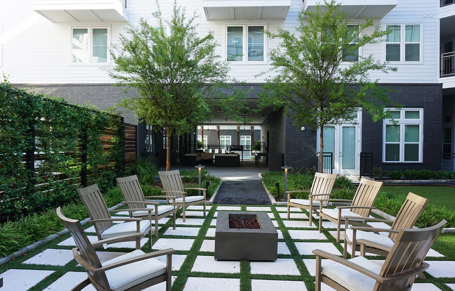 Clark Condon was part of the team that designed the 4-story luxury apartments and multi-use development at Folio West in the Westchase District. We designed all of the amenity courtyards, which include the pool area with cabanas, outdoor kitchen, sundeck, and furniture. Pop jets and a beautiful waterfall feature make the pool a showcase piece of the design. Our design also included the Paseo that serves as a gathering area connecting the courtyards and the lavish gardens, which contain a fire pit, lounge space and a general-use lawn.