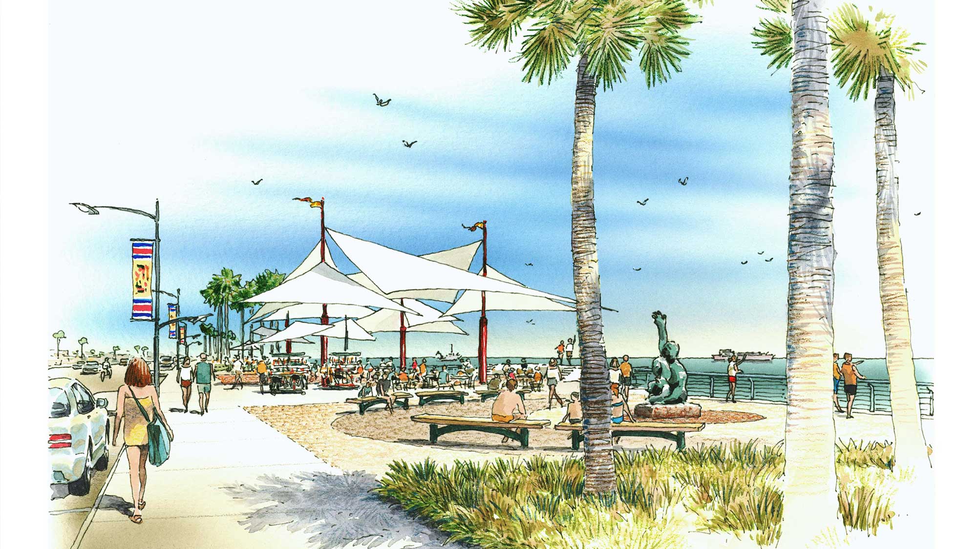 In the historic Hampton Battery area lies Fort Crockett Park on Galveston’s Seawall. An iconic and historic place to the area, the park was in need of some updates to create an urban space. We used native plantings, benches, picnic tables, shade and special plaques that tell the story of the seawall, the fort and Galveston’s record of surviving storms. Our team’s concept starts just west of 45th Street, in the historic Hampton Battery area, and stretches west almost to 51st Street, stopping at what is known as the Izard Battery. The battery areas, which jut out toward the surf, are part of the original military installations at Fort Crockett. Enhancements to the historic seawall park were funded with a $1 million donation from snack-food maker Frito-Lay.