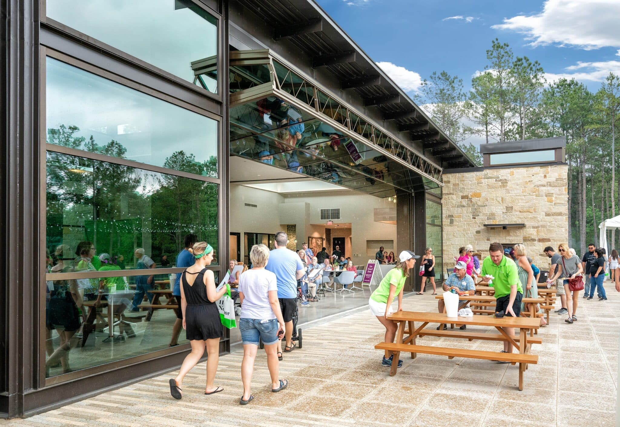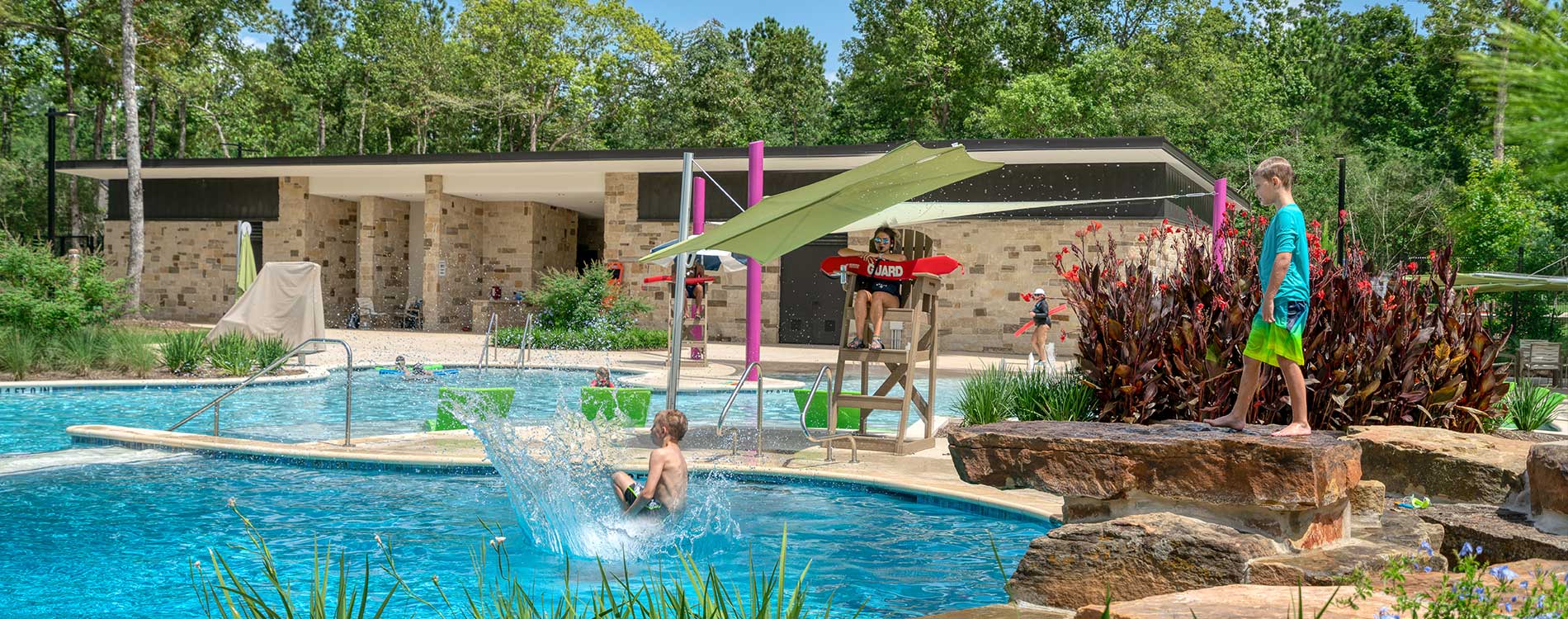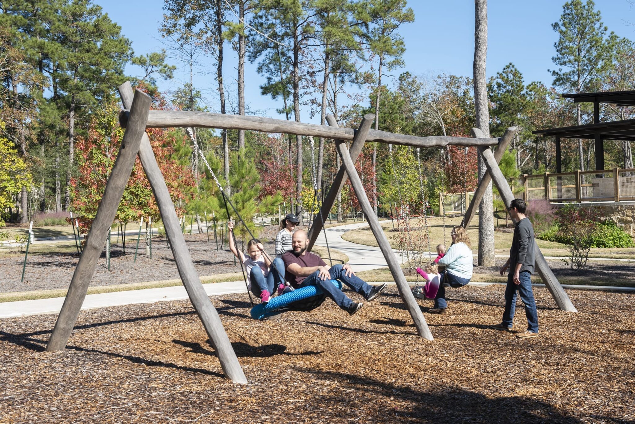 Founders Park is a 16-acre community park within The Woodlands Hills, a new master-planned community by The Howard Hughes Corporation. Founders Park has an amenity center, pool complex, adventure playground and sprayground, event lawn, dog park, tennis courts, open play, trails, and undisturbed natural areas. The character was inspired by the existing natural attributes of the land, such as the trees, wildflowers, mature shrubs, creeks and topography. The large adventure playground builds on the topography of the site to create exciting experiences for exploration and play.