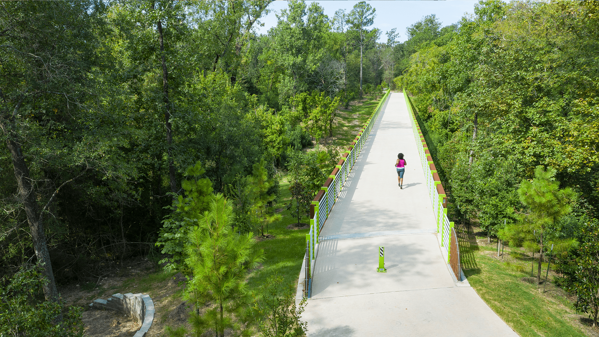 As part of Bayou Greenways 2020, a $220 million public-private effort to distribute parkland equitably to neighborhoods throughout Houston, Clark Condon worked with the Houston Parks Board on the Lower Greens Bayou Segments. The project began with a study to identify ways to improve connectivity to public facilities, residential neighborhoods and parkland, greatly expanding connections in the region. The study elicited the development of a system of trails within a linear park including paved running/biking trails, secondary informal nature trails and paddling trails, a bridge for access, increased forest cover and restoration of understory ecosystems. The Greens Bayou Trail established connectivity between the north and south sides of Halls Bayou via a 460-linear foot bridge. The concrete trail connects to the bridge and winds through a mature forest. There are also three kayak launches to provide safe and accessible paths to the water. From design through construction, all parties ensured the project minimized disturbance and protected this valuable landscape.