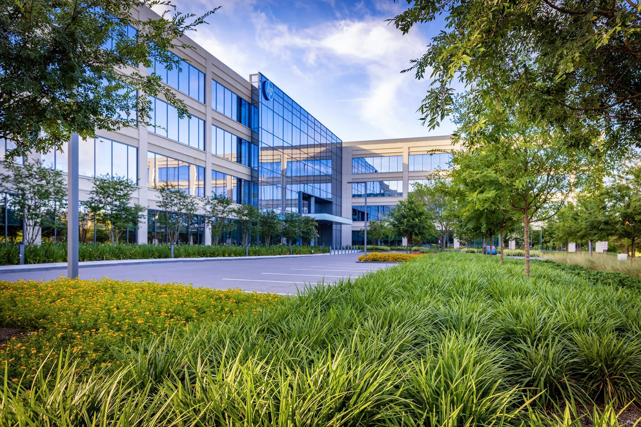 The new Hewlett-Packard campus is located in Springwoods Village, a new 2,000-acre mixed-use development in Spring, Texas that aims to set the precedent for sustainability and greener living. The nearly 12-acre site has two office buildings, a parking garage, a basketball court and 4.5 acres of native and adaptive planting. The lush planting design provides a warm welcome and adds to the overall character of the site. All of the buildings are connected via custom paving patterns that help direct employees and visitors to their destinations. The project is also LEED certified.