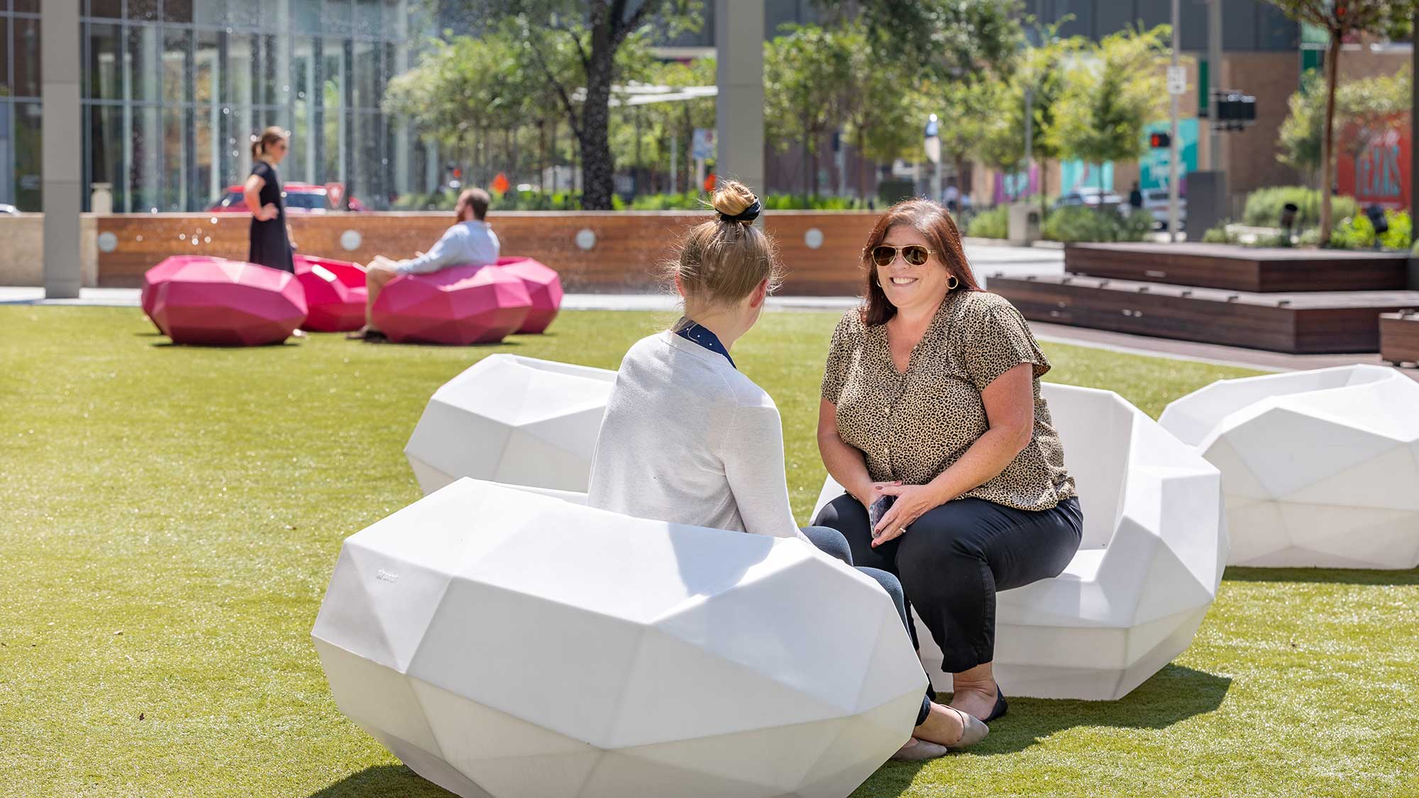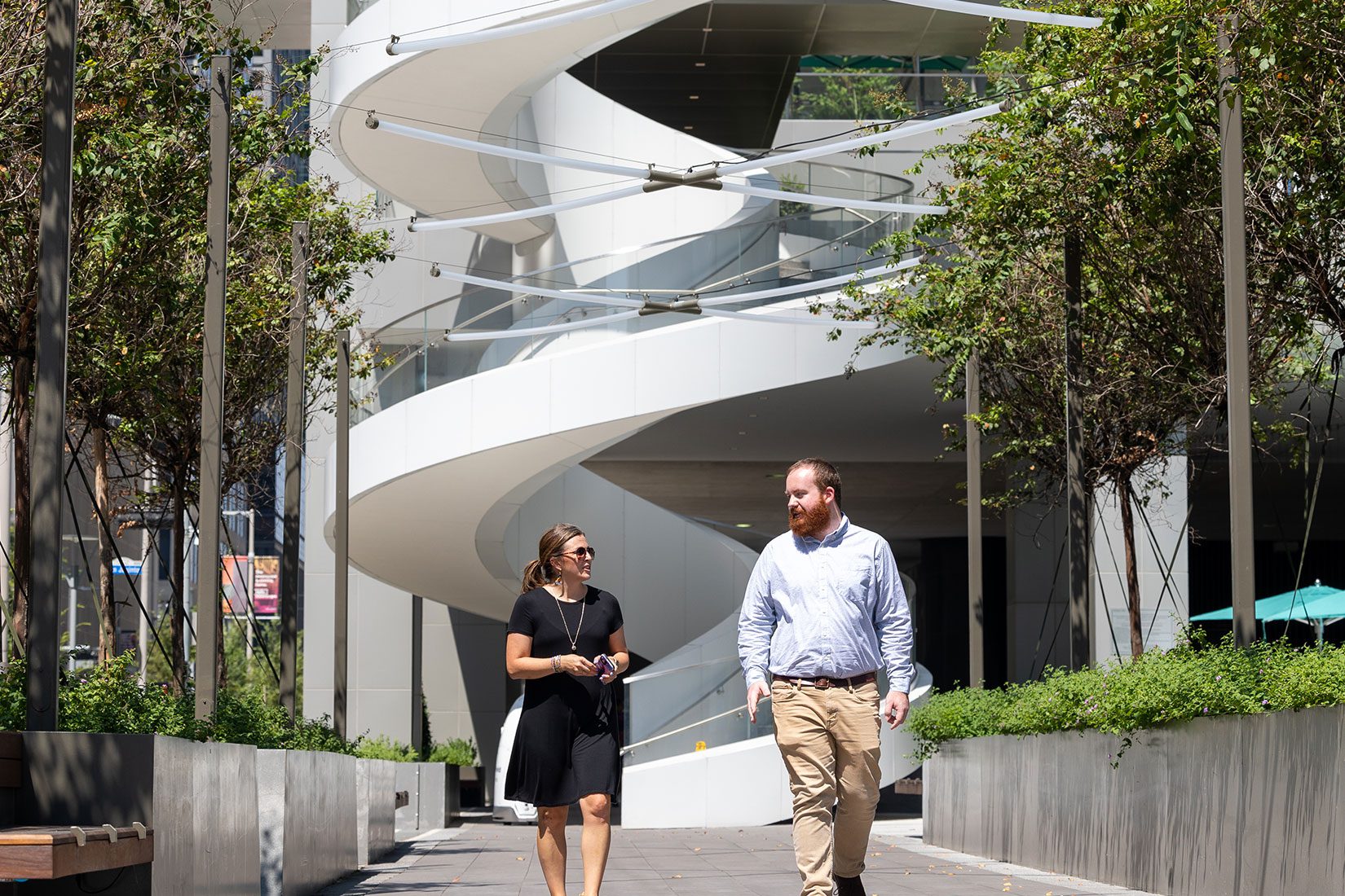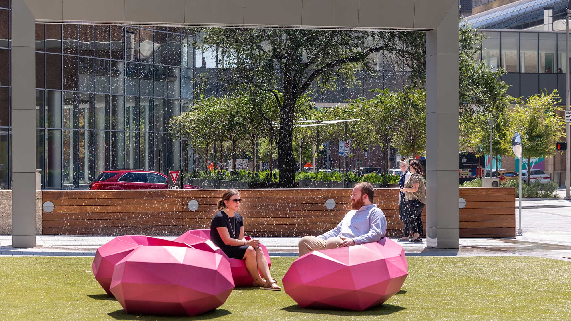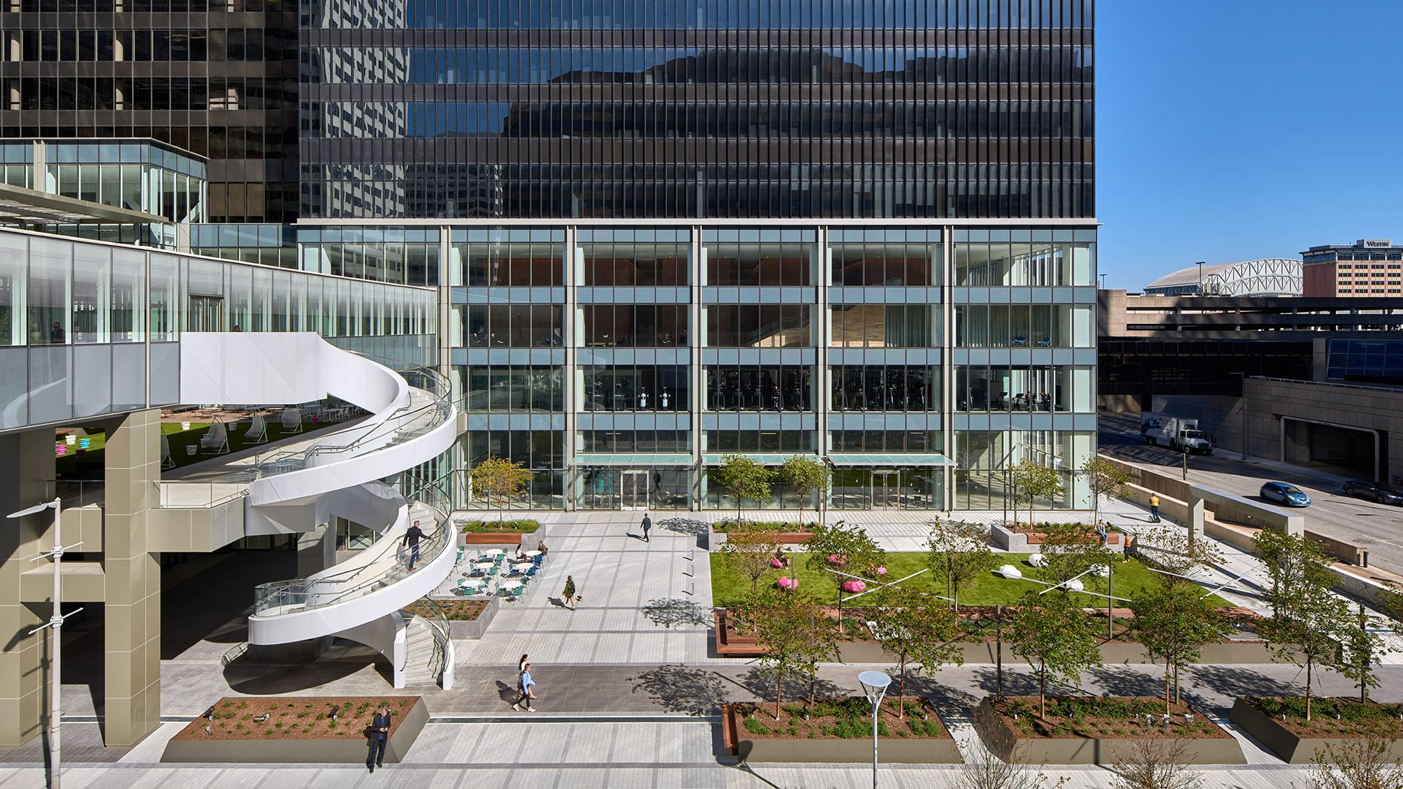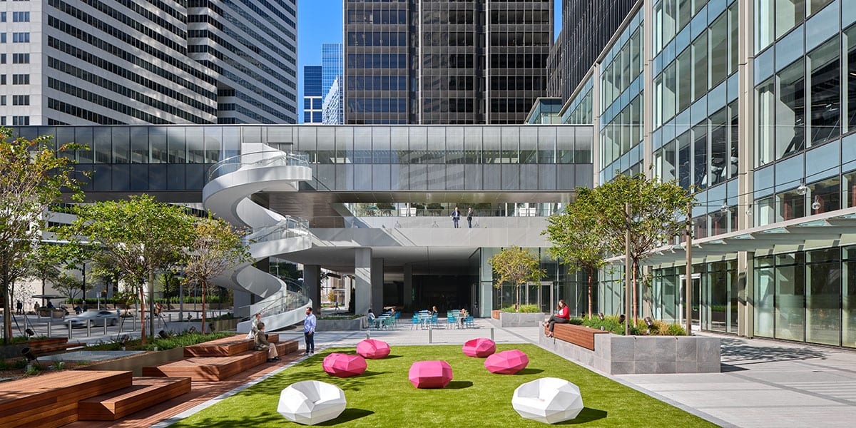 Houston Center, a five-block complex built in the 1980s, was redeveloped into a vibrant destination in the heart of downtown Houston. Clark Condon worked with Gensler, Brookfield Properties, and the design team to transform the space into a a park-like setting. A new arrival experience was created through a reimagined central plaza and greenspace, including an iconic spiral staircase that connects the plaza to landscaped terraces above. Connectivity and circulation were prioritized to create a pedestrian-focused, walkable environment with highly amenitized, unique spaces for working, relaxing, or socializing.