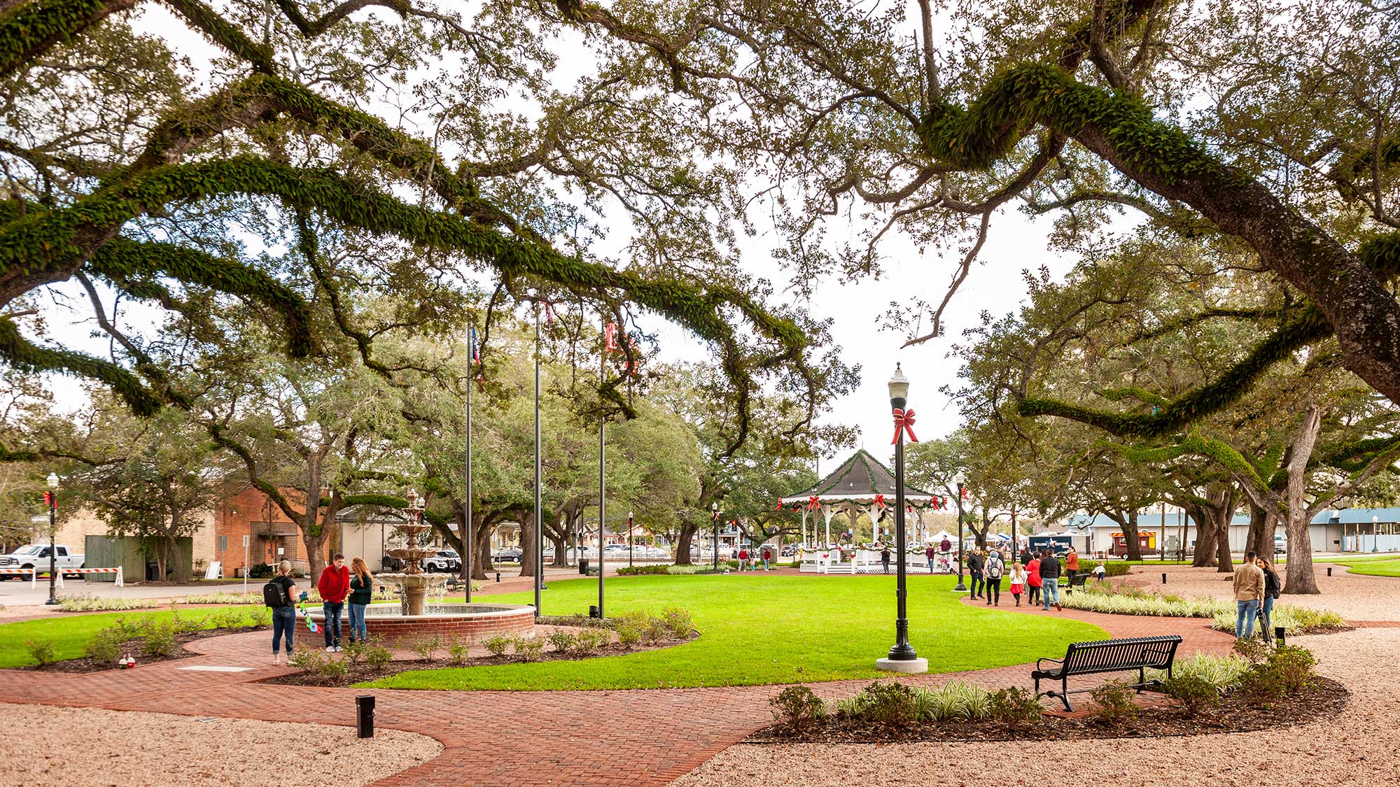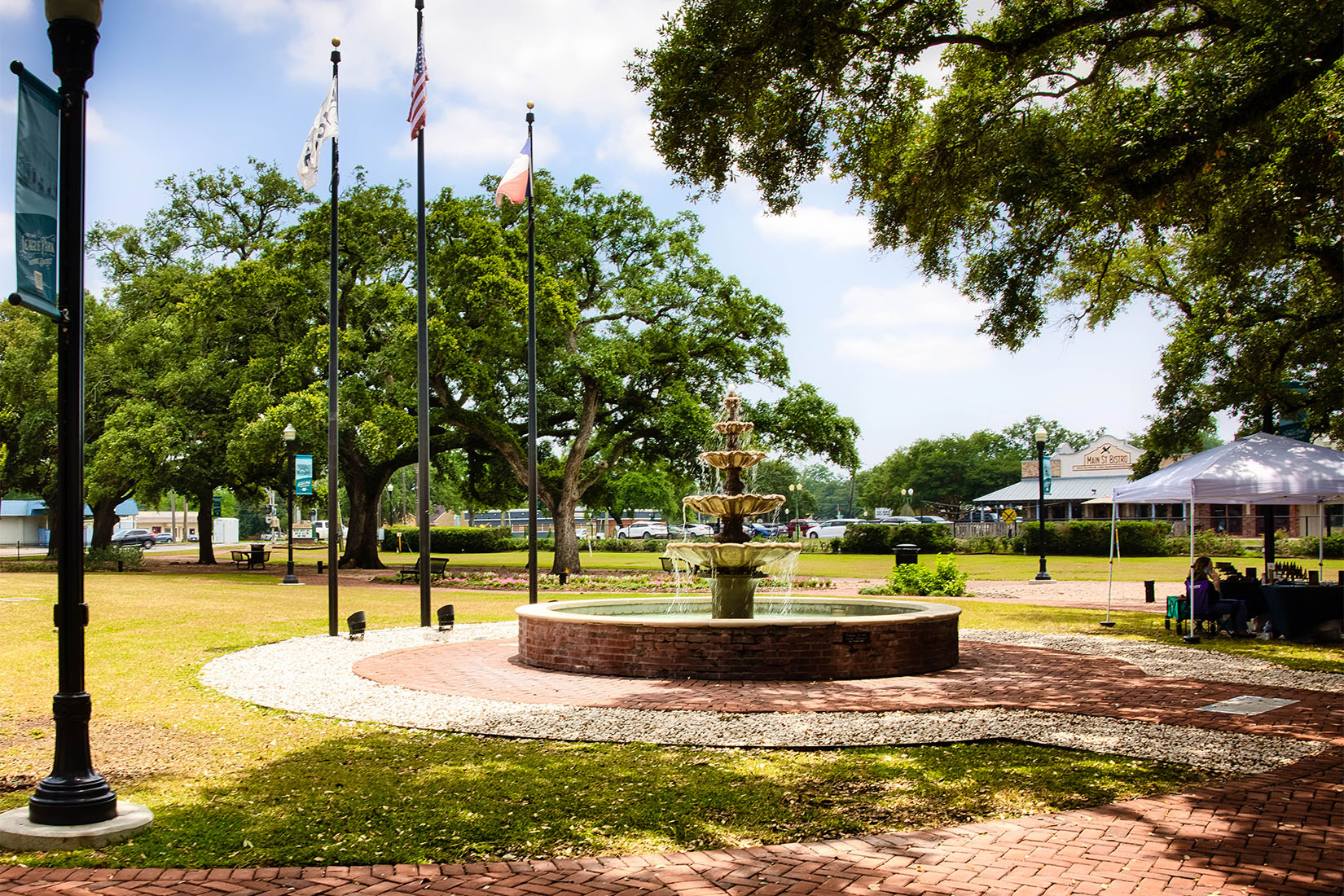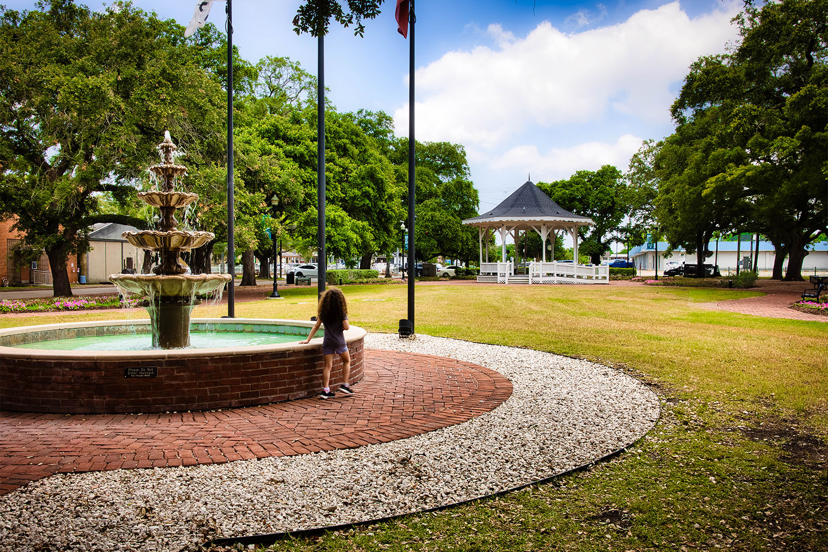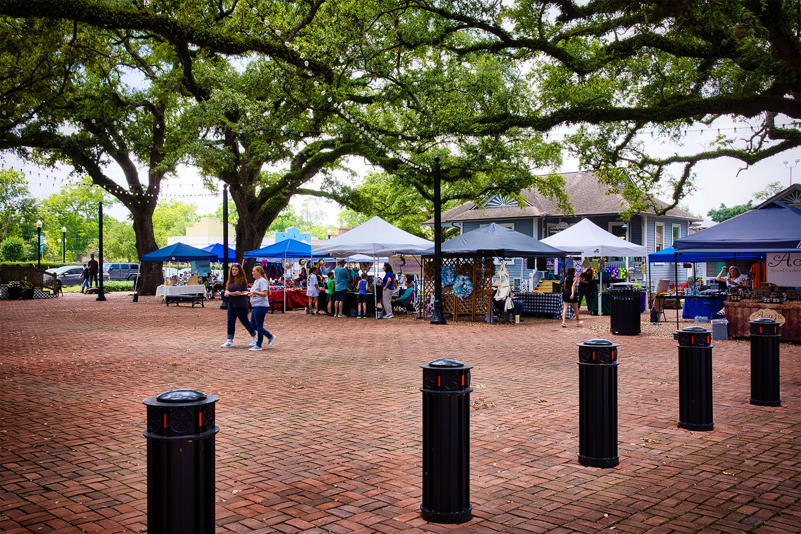 League Park, a historic park, includes iconic elements such as a gazebo, caboose and clock tower. Divided by a central plaza, the north side of the park contains more active recreation elements like basketball courts and a large play structure. The south side is more passive with large historic Butler Oak Trees, a gazebo and several seating areas. In order to meet the goals for the future vision of the park and the downtown area, elements in the park were relocated or removed providing more open space and better circulation. Half of the existing parking lot was removed to expand the park’s usable footprint. The complete refresh of the park includes clay brick pavers, new site furniture, lighting and understory planting with irrigation. The park also includes a large open grass area for outdoor concerts and movies, a large brick paved plaza compete with catenary lights for evening events and market days, as well as other improvements.