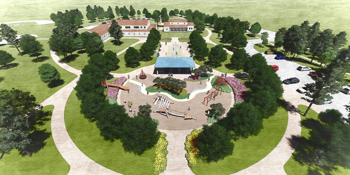 | HIGHLIGHTS: | Sports fields, restroom/concession building, walking trails, kayak launch, event lawn, pavilion, tennis courts, pool complex, renovated pool building, playground, splash pad & pavilion, renovated community center, garden, and fitness stations. |