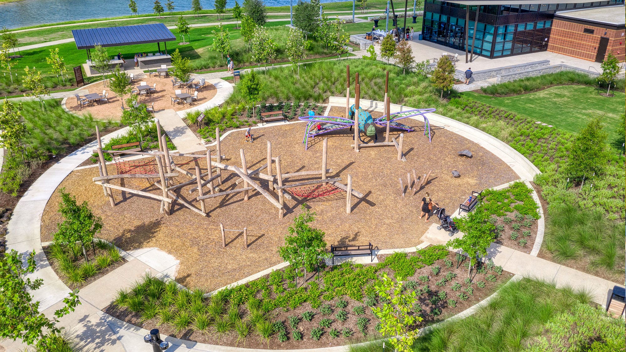 Parkland Village is one of the four villages within the Bridgeland Community in Cypress, Texas. Clark Condon was asked to create the overall character and theme for this village. Inspired by the name “Parkland,” we created a concept that blended elements from The Emerald Necklace designed by Frederich Law Olmstead with prairie-style architecture by Frank Llyod Wright.