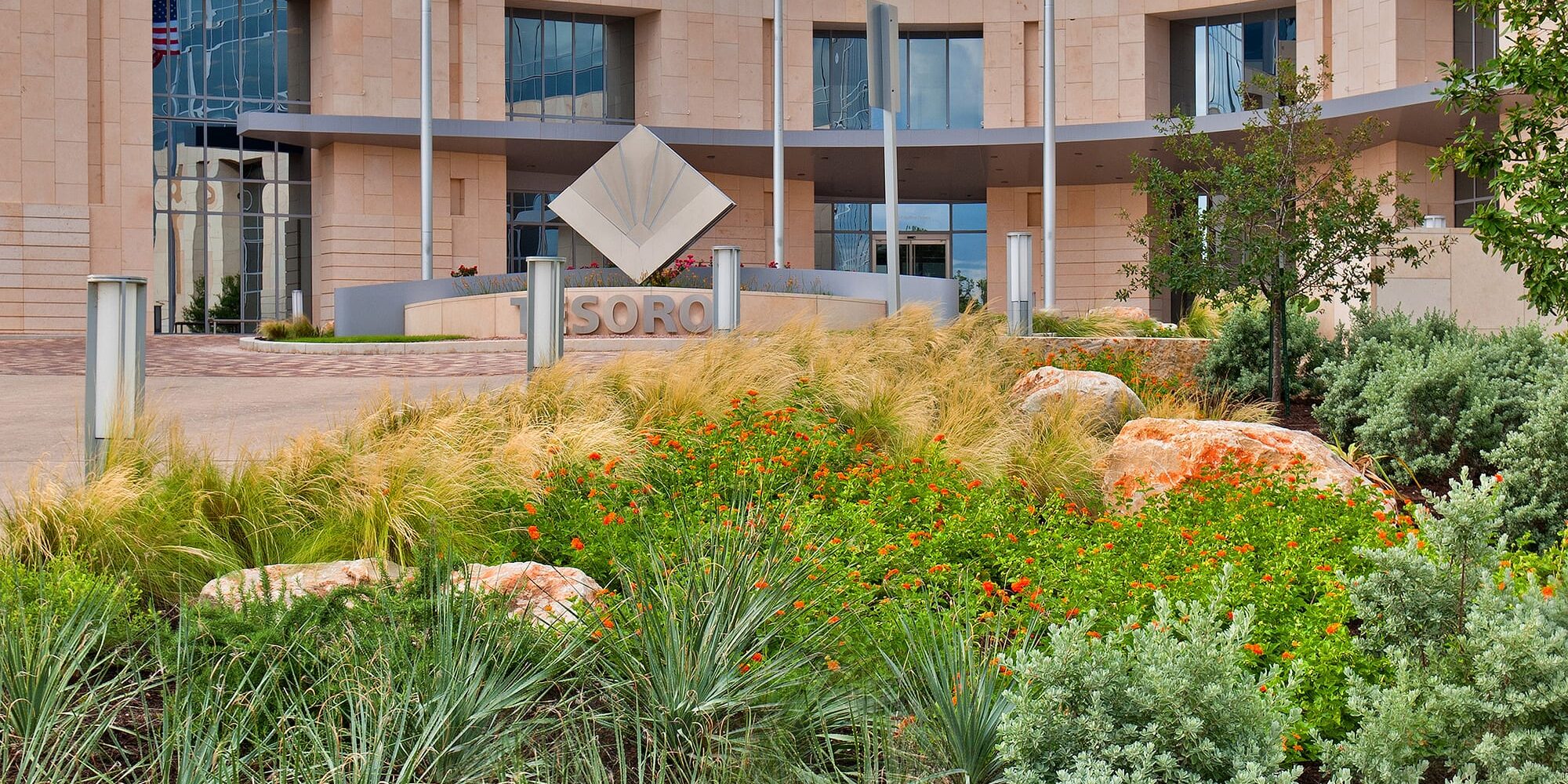 Clark Condon worked with the design team on the development of a new corporate headquarters for Tesoro in San Antonio. Phase One is a 23-acre parcel within the master planned 120-acre commercial office park. A challenge for the design team was to create an iconic presence appropriate to Tesoro’s brand image while remaining respectful of the native hill country landscape. Key design considerations included Tesoro’s phased expansion, sustainable design and operations, future adjacent development and vehicular circulation. The design includes many outdoor spaces of varying levels of formality. All of the plant material was contract grown by local nurseries. The project achieved LEED Silver certification.