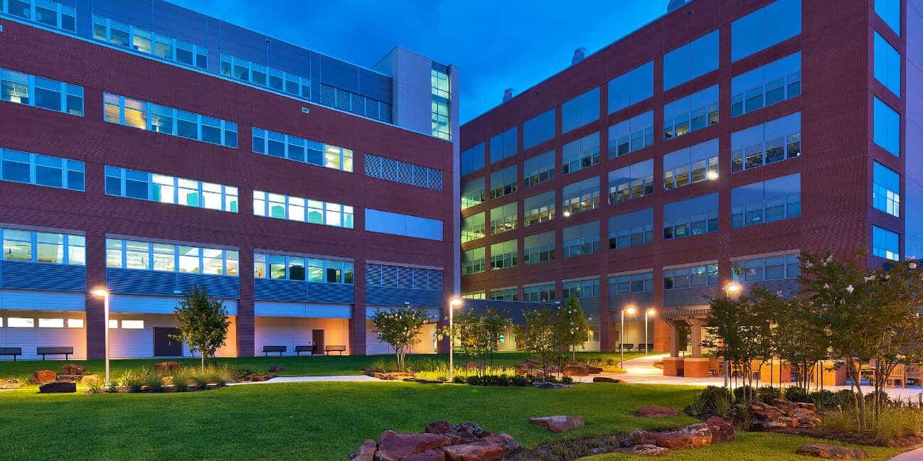 A multi-phase, multi-building research park complex was conceived to expand the university’s capabilities which necessitated a first-ever move outside the university’s densely utilized Texas Medical Center campus. Clark Condon worked with the architectural team on a master plan for the complex, which includes several buildings, a new central plant, and a parking garage. The first phase housed a neurosciences replacement facility and a stem-cell-dedicated biological research education facility in one building and a UT Dental Branch replacement facility in a second building. This new separate “south campus expansion” establishes the research park complex with its own unique identity. The space affords ample room for the university’s future needs. Our design included a central courtyard connecting the facilities, and we also completed all the surrounding streetscapes.
