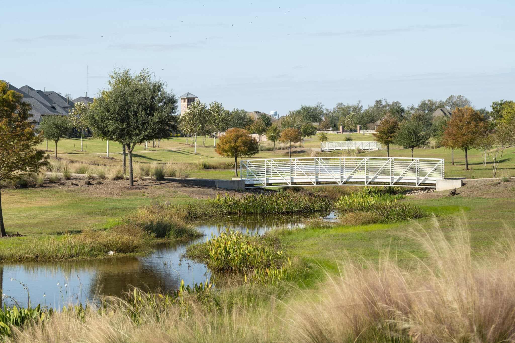 Veranda, a 590-acre timeless community, reflects the rich heritage of Richmond. Seated within the heart of Fort Bend County near the Brazos River and Historic Downtown Richmond, the community incorporates timeless elements throughout, such as expansive porches, verandas, rich colors, an iconic clock tower, towering entries, and natural dry ponds. With strong roots to the surrounding area, residents will take advantage of living just minutes from major employers and world-class shopping, dining and entertainment. Best of all, this community features miles of hiking trails, a destination leisure pool, a unique woodsy play experience with a tree house, recreation and amenity spaces, a recreation and fitness center, and a dog park, as well as several pocket parks and garden areas. The scope of work began with programming and research into the history of the area and has progressed into ongoing phases of detailed documents and construction administration.