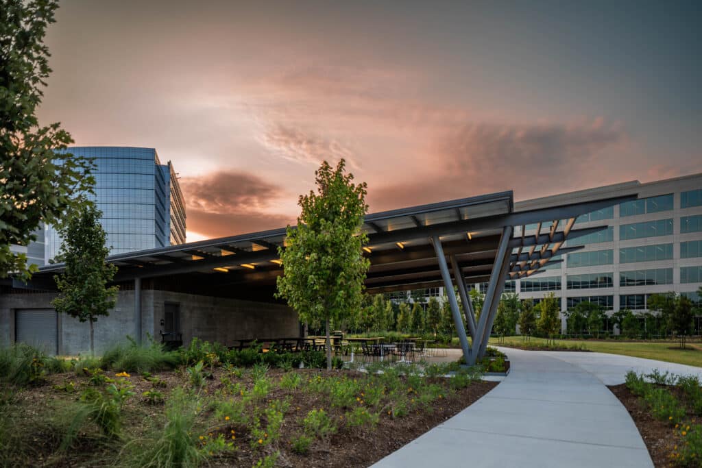 Central Park at Research Forest Lakeside reimagines a 4.6-acre former parking lot into a vibrant core amenity space for the bustling campus. At its center, a 6,900-square-foot pavilion serves as a dynamic hub for daily activities and special events. The park’s design seamlessly integrates sustainability and recreation, with walking trails crafted from recycled asphalt sourced […]